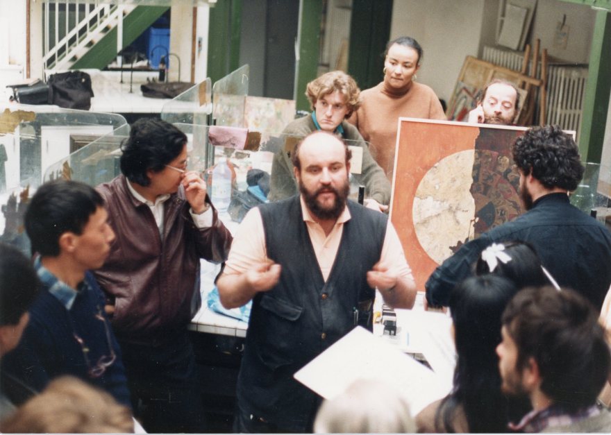 Il s’attache à la transmission des « savoir-faire » et ouvre son atelier à de nombreux spécialistes de la couleur, du marouflage, de la dorure, de la miniature, la peinture chinoise, la calligraphie et collabore avec des chimistes et des conservateurs-restaurateurs dans le domaine de la peinture, du support et des arts graphiques.